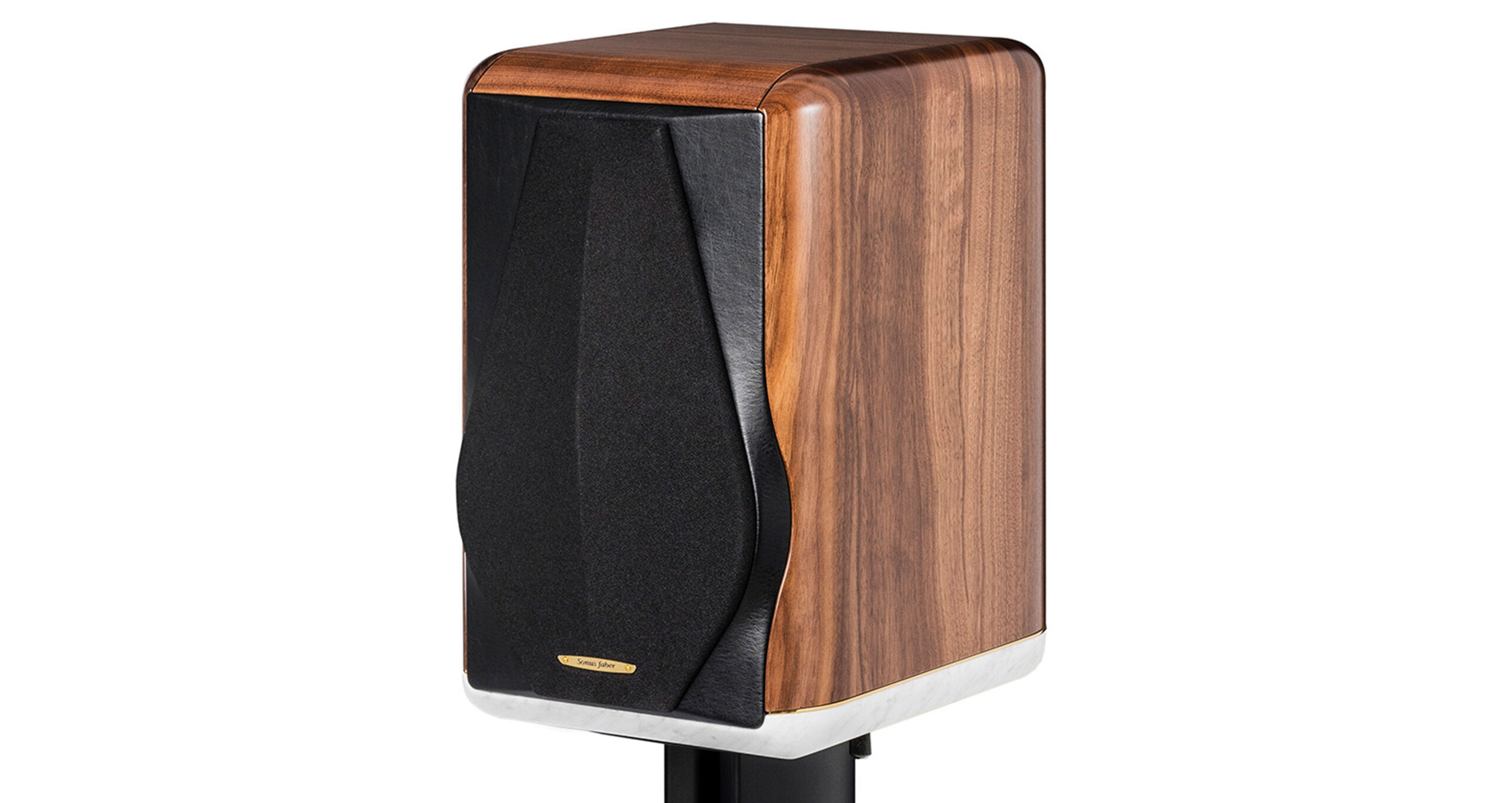 初代同様、ウォルナット無垢材をもとに曲面を多用したそのエンクロージャー設計には、堂々たる風格と、木材やレザーという異種素材それぞれの特性を活かす卓越のクラフトマンシップが美しく調和しています。異種素材を大胆に組み合わせてエンクロージャーの剛性を総合的に高める伝統の手法は、近年のソナス・ファベールのスピーカーにおいてさらなる進化を続けていますが、“Electa Amator III”では、底部に大理石を組み込む、さらに新たなコンセプトを導入しました。