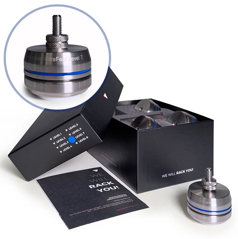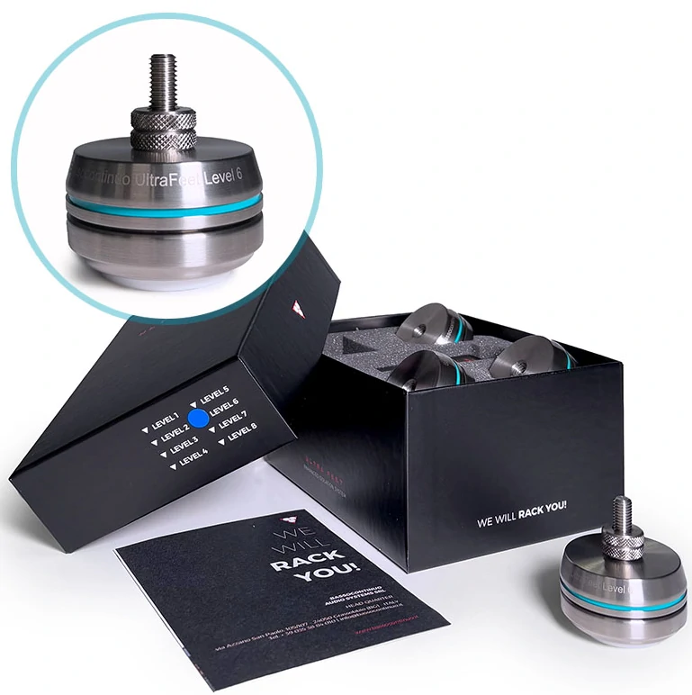 『アナログ・ターンテーブルや CD プレーヤー等の駆動時の振動』、『スピーカーの再生時による振動』は、どんなにオーディオ・ラックが優れていても、オーディオ・システムの脚部やスパイク部が的確にデカップリングさせていなければ、僅かな振動からの隔絶を達成する事は出来ません。